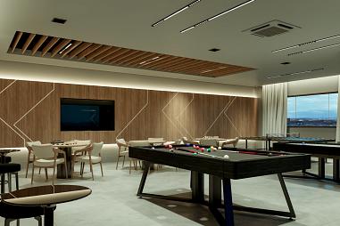 O condomínio conta com áreas de lazer e convivência mobiliadas, decoradas, climatizadas e equipadas.