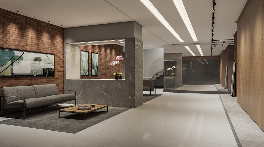 O condomínio conta com uma área de lazer e convivência mobiliada, decorada e climatizada.