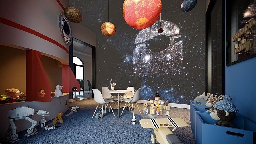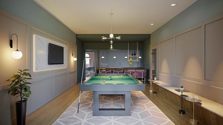 O condomínio conta com uma área de lazer e convivência mobiliada, decorada e climatizada.