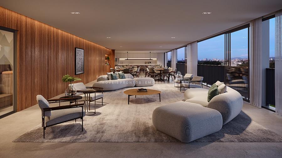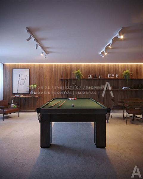 O condomínio conta com uma área de lazer e convivência mobiliada, decorada e climatizada.