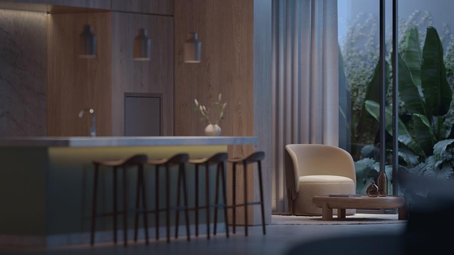 O condomínio conta com uma área de lazer e convivência mobiliada, decorada e climatizada.
