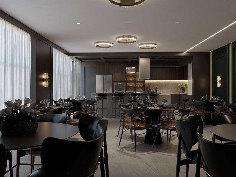 O condomínio conta com uma área de lazer e convivência mobiliada, decorada e climatizada.