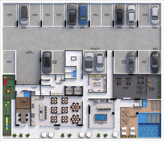• Apartamentos de 3 dormitórios com 1 e 2 suítes com plantas de 93,85m² à 104m²