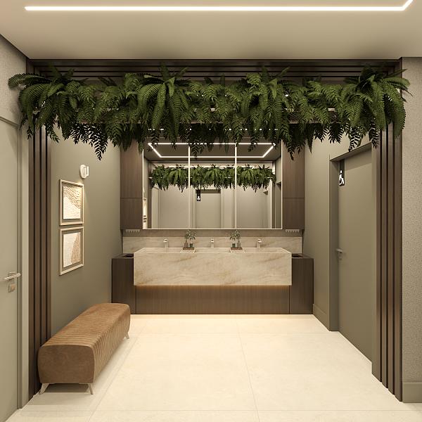 O condomínio conta com uma área de lazer e convivência mobiliada, decorada e climatizada.