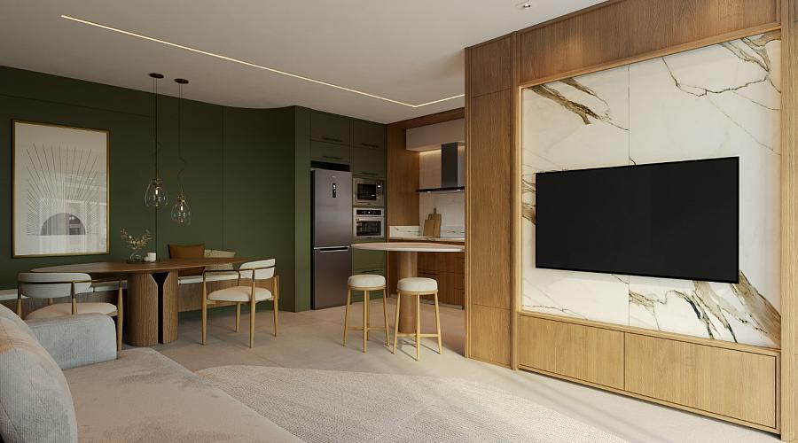 • Apartamentos de 1 dormitório com plantas de 43,90m².