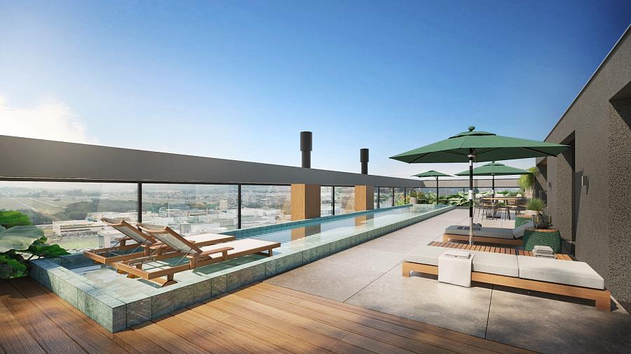 • STUDIOS com plantas de 34,68m² e 36m²,