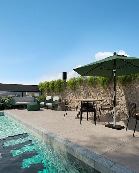• STUDIOS com plantas de 34,68m² e 36m²,