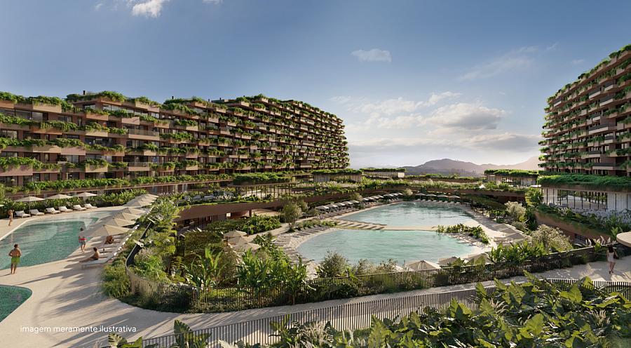 Com um design biofílico e o conceito de casas suspensas com terraços amplos, piscina e jardim, que vão de 110m² à 931m² de área privativa, com 2,3 ou 4 suítes, o empreendimento surpreende em sua grandeza e proporção.