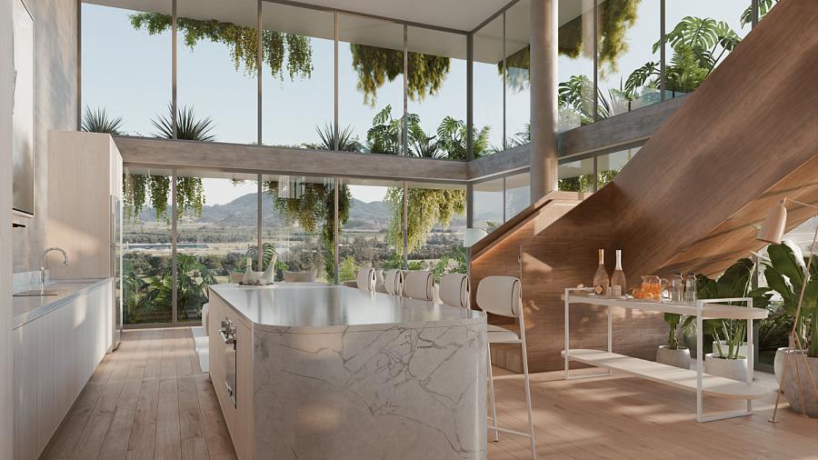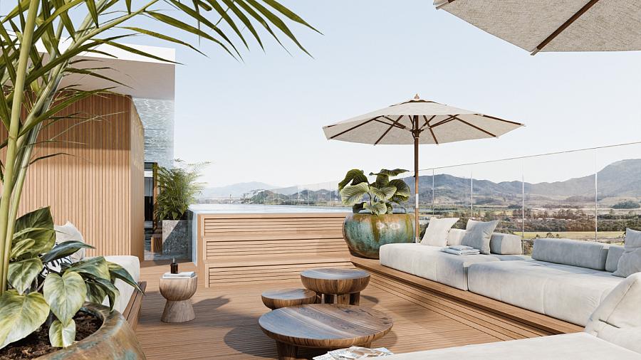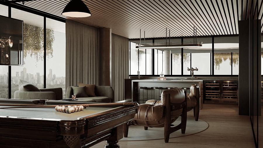 O condomínio conta com uma área de lazer e convivência mobiliada, decorada e climatizada.