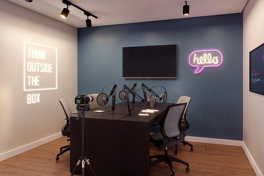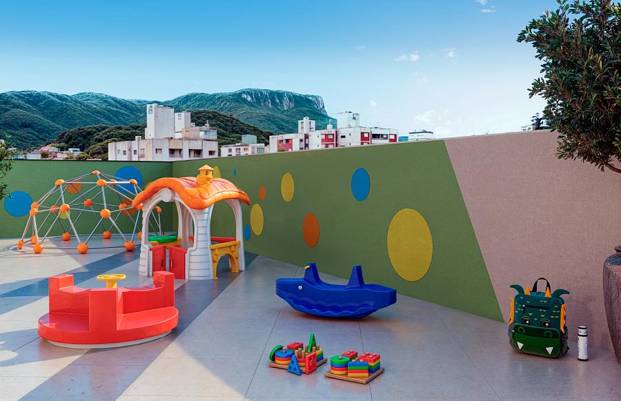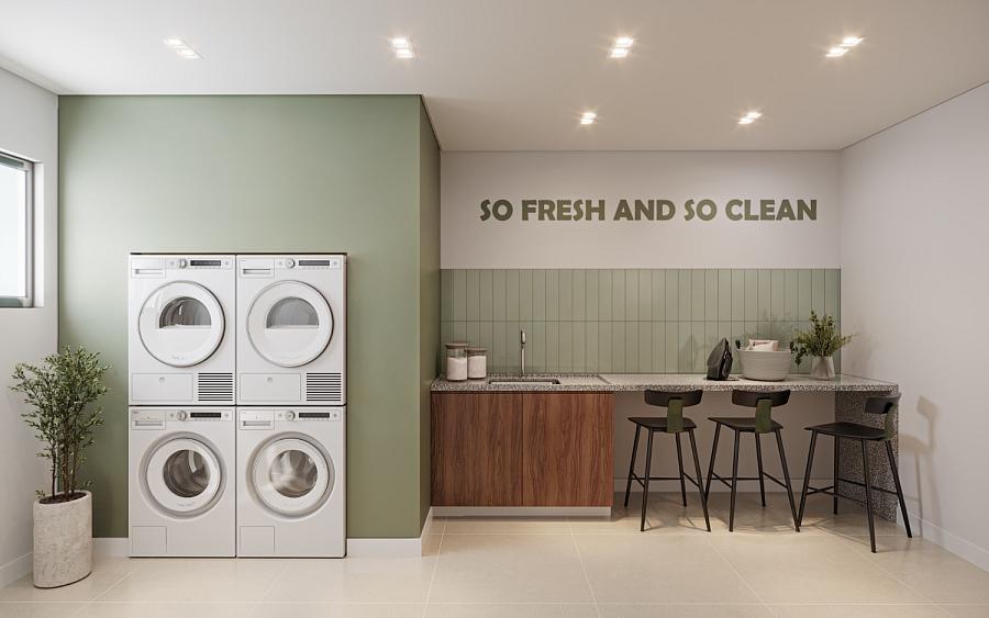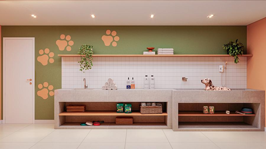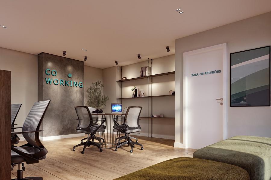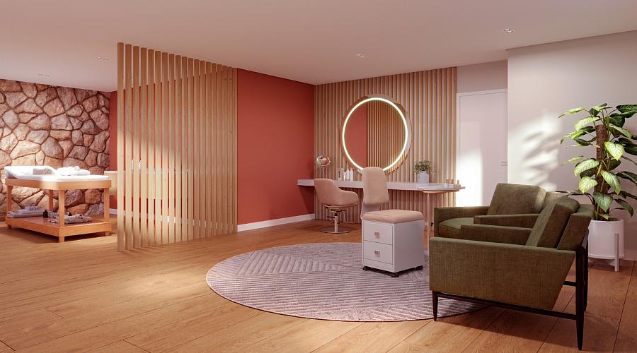 O condomínio conta com uma área de lazer e convivência mobiliada, decorada e climatizada.