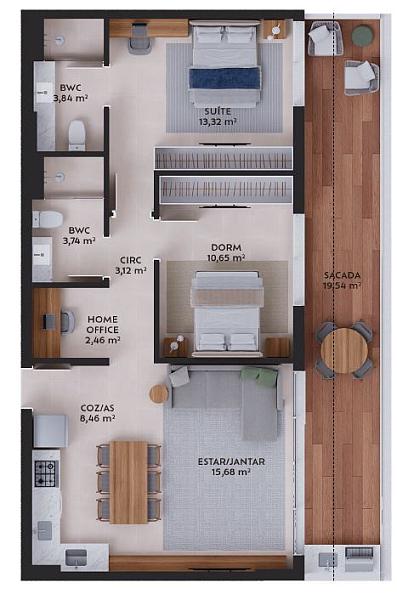 Apartamento 93m² privativos |  2 Dorm sendo 1 suíte , ampla sacada.