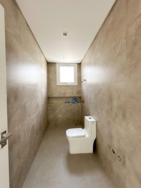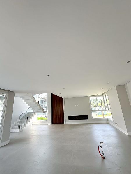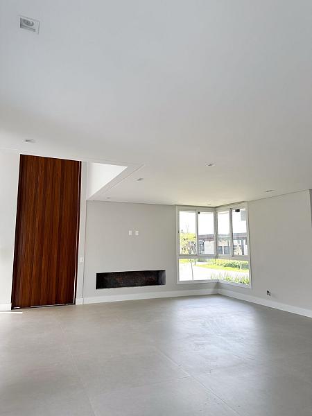 - Sala de estar, jantar, cozinha e área gourmet com churrasqueira a carvão integradas;