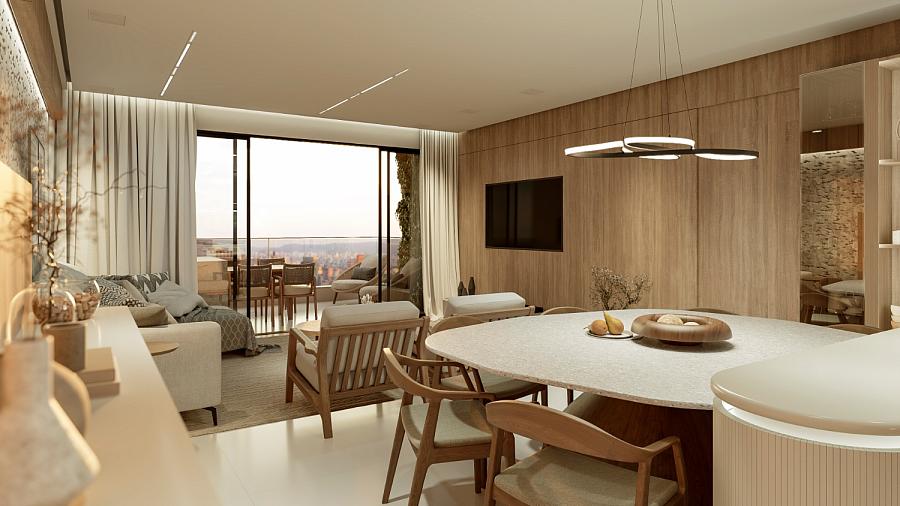 O condomínio conta com áreas de lazer e convivência mobiliadas, decoradas, climatizadas e equipadas.
