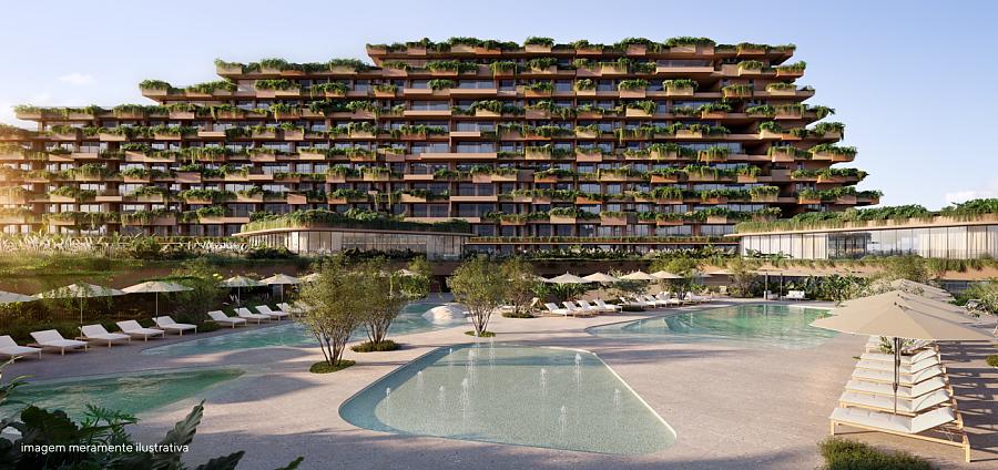 Com um design biofílico e o conceito de casas suspensas com terraços amplos, piscina e jardim, que vão de 110m² à 931m² de área privativa, com 2,3 ou 4 suítes, o empreendimento surpreende em sua grandeza e proporção.