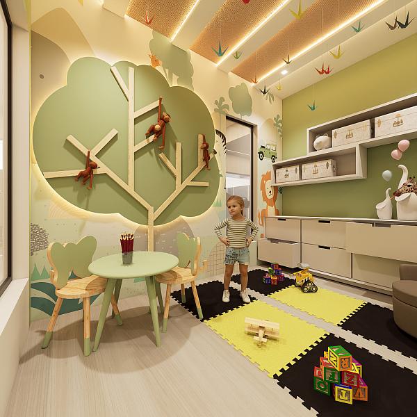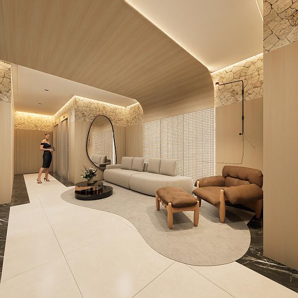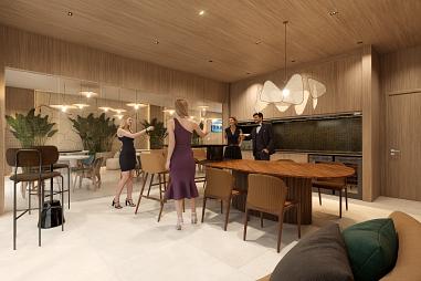O condomínio contará com uma área de lazer e convivência mobiliada, decorada e climatizada.