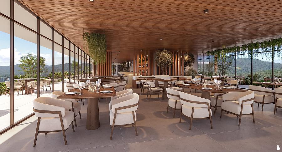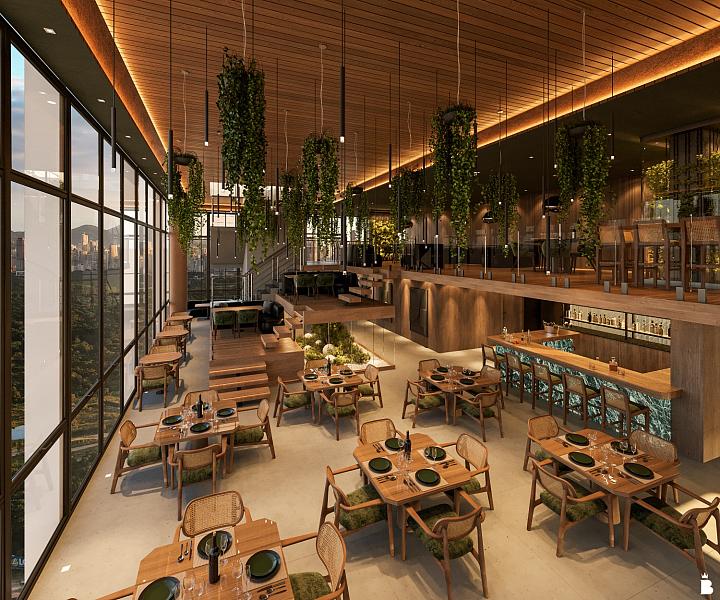 Restaurante rooftop com vista panorâmica e mezanino (33º andar)